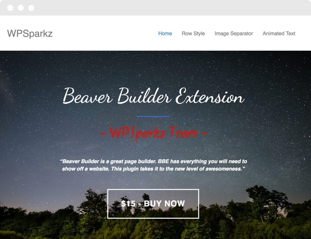 Developed by WP Sparkz, the add-0n introduces further Beaver Builder modules including row styles,  image separators, and animated text effects.